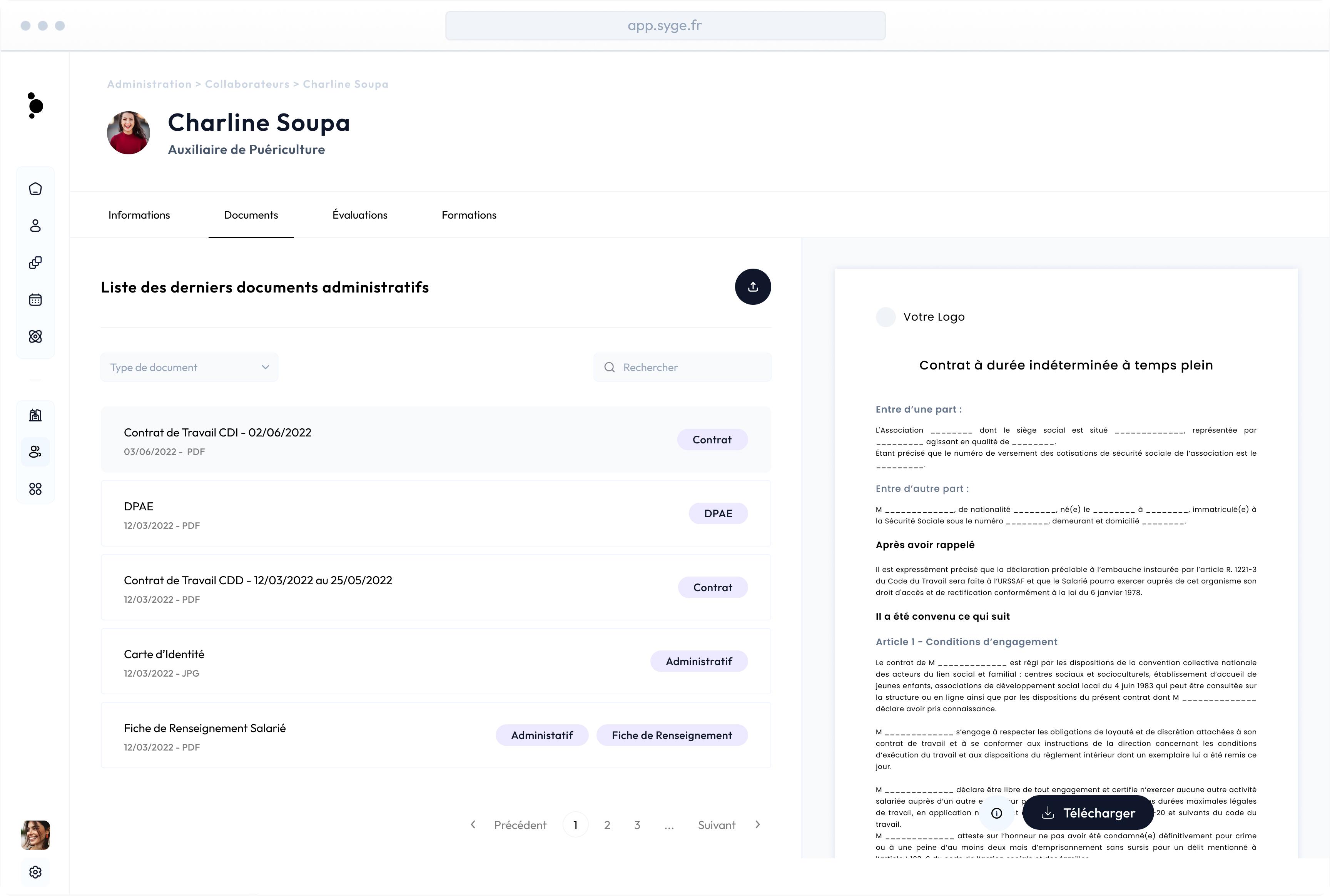 Syge génère automatiquement tous vos documents administratifs, avec des informations pré-enregistrées pour chaque situation rencontrée, vous simplifiant ainsi la gestion quotidienne.