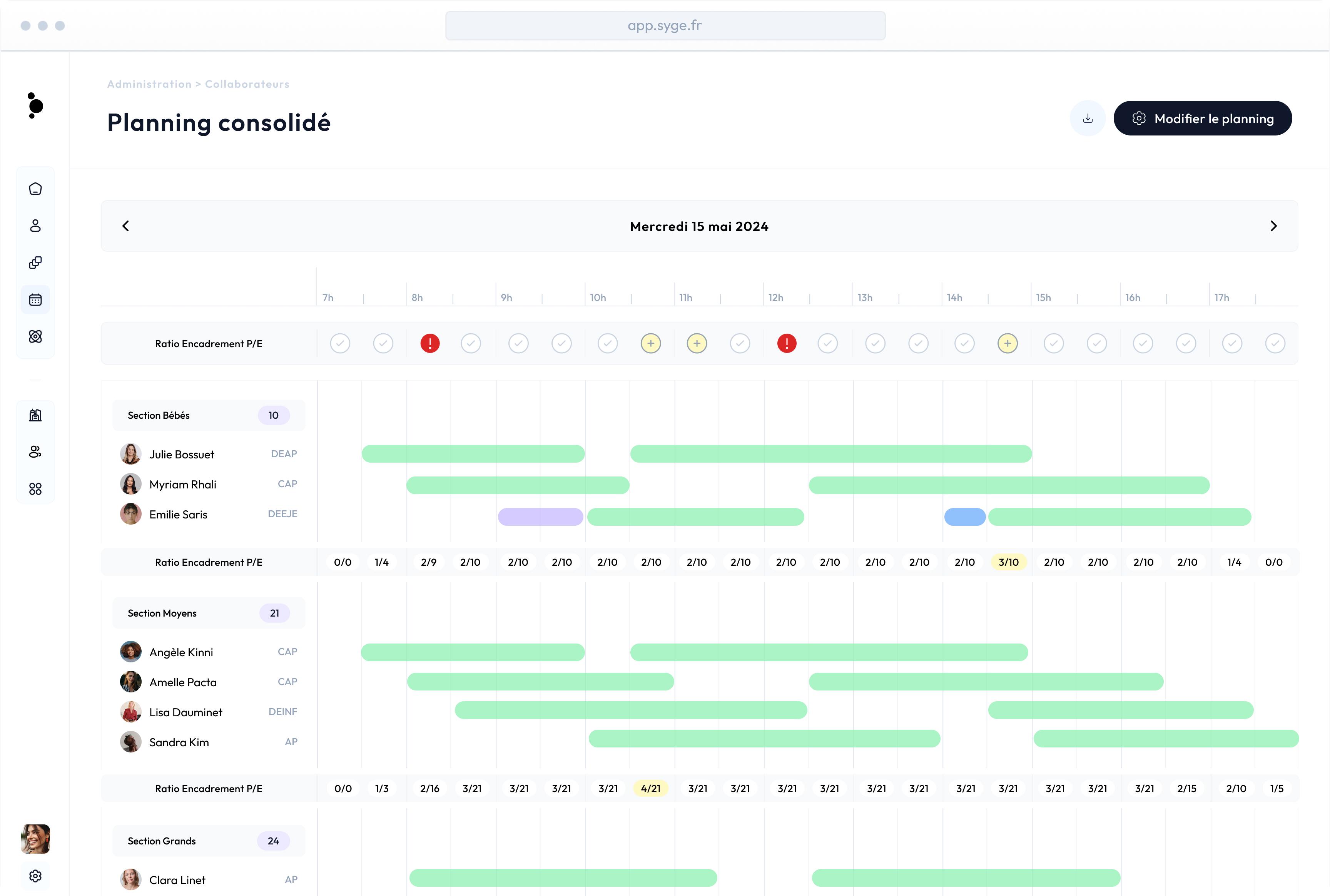 Oui, Syge a été conçu avec des professionnels de la petite enfance pour répondre à vos défis réels. Plannings, contrats, tâches RH : tout est pensé pour simplifier votre quotidien.